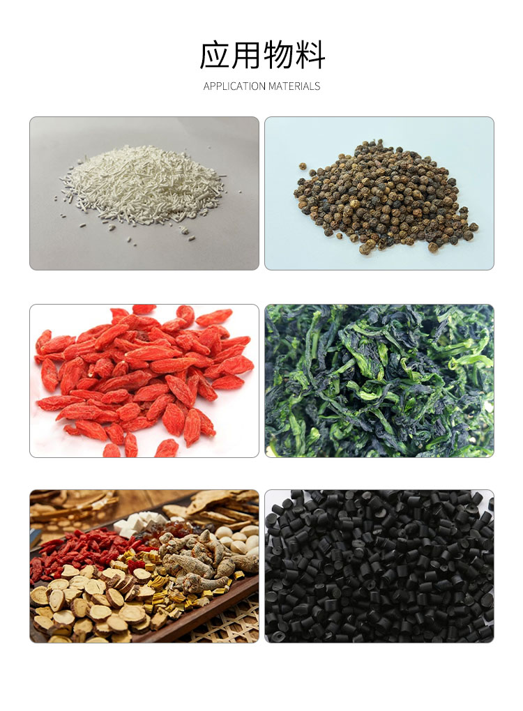 脱水蔬菜、颗粒饲料、味精、鸡精、椰蓉、有机颜料、合成橡胶、丙烯纤维、药品、小木制塑料制品、电子元器件老化、固化、碳酸钙 、白炭黑染料等。