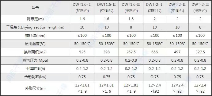 注:1.将上表中同一规格的网带干燥机加料台,中间台.出料台三台串联使用,保证蔬菜脱水干燥生产工艺要求。显著提高产量,有效保证产品品质。