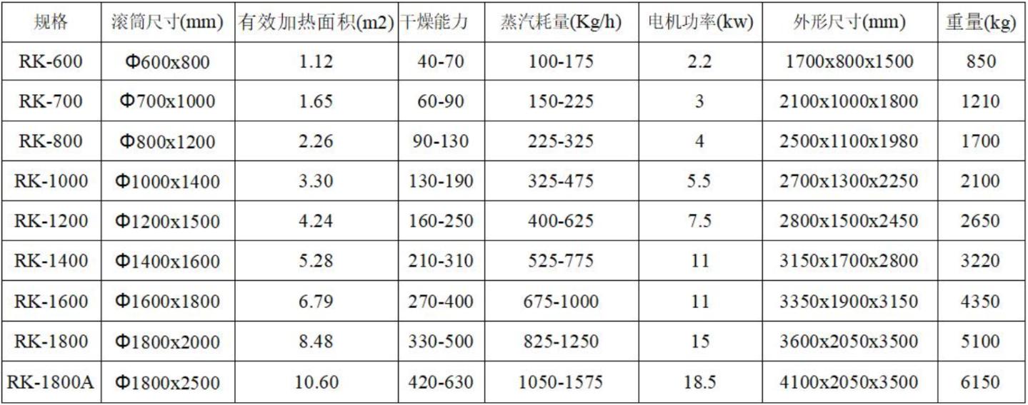 受到筒体尺寸的限制 一般滚筒干燥器的干燥面积,不宜过大。单筒的干燥面积,很少超过12m2。同一规格的设备,其处理料液的能力,还受到料液性质、湿含量控制、料膜厚度、滚筒转速等因素的影响,变化幅度较大,一般在50~2000kg/h。