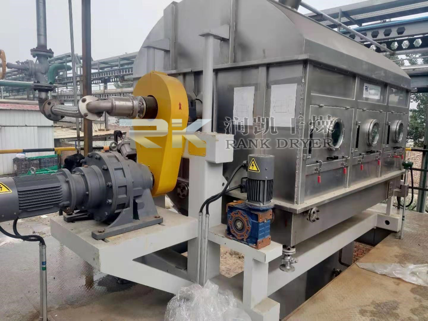 高盐母液干化蒸发一体机是由常州润凯干燥自主研发的一种内加热传导型转动干燥设备,湿物料在滚筒外壁上获得以导热方式传递的热量,脱除水份,达到所要求的湿水含量.热量由筒内壁传到筒外壁,再穿过料膜,其热效率高,可连续操作,故广泛应用于液态物料或带状物料的干燥,常州润凯干燥的母液干化蒸发一体机对膏状和粘稠物料更适用。